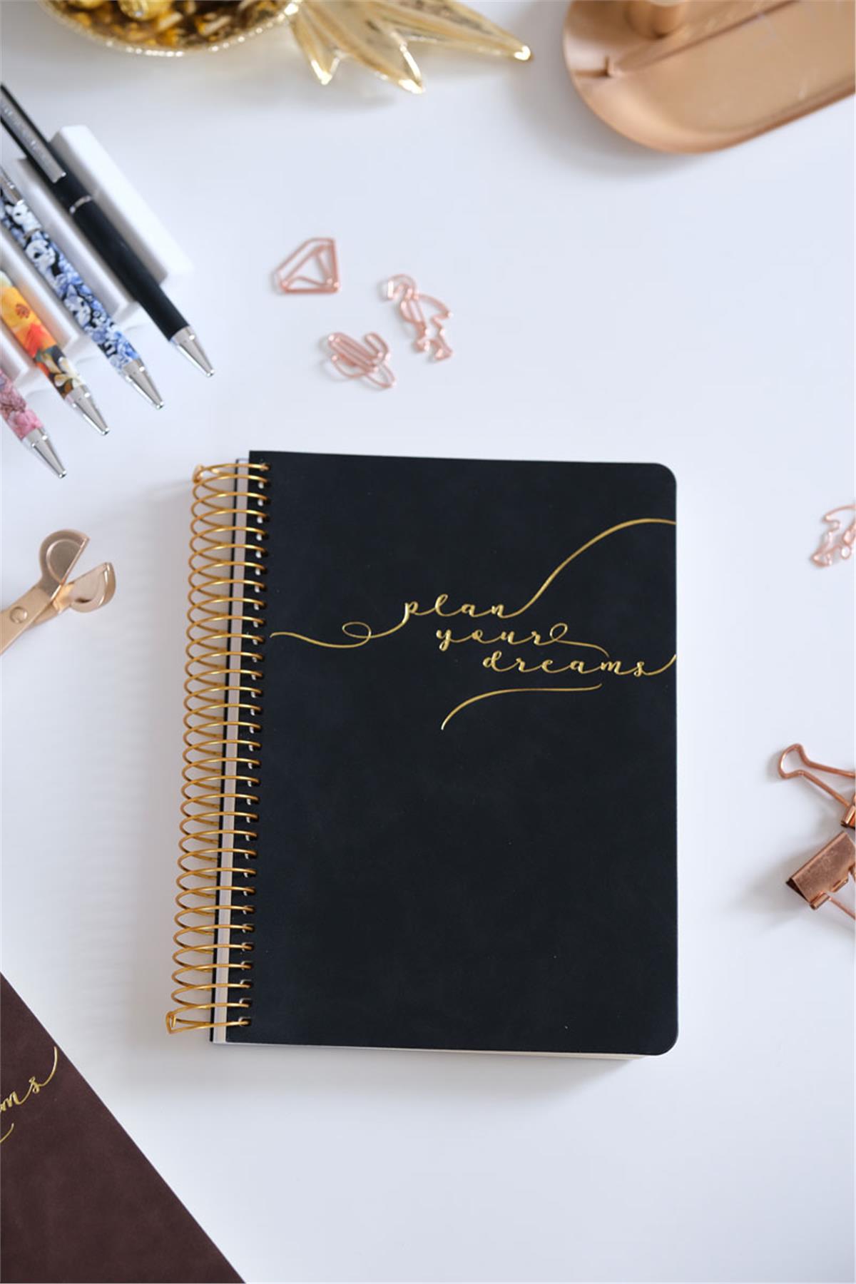 Kişiye Özel Siyah Spiralli Vegan Deri Süresiz Planlayıcı Ajanda